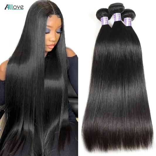Allove Bundles Human Hair Bone Straight Bundles Brazilian Hair Weave Bundles 1/3/4 PCS 30 32 Inch Remy Hair Extensions For Women